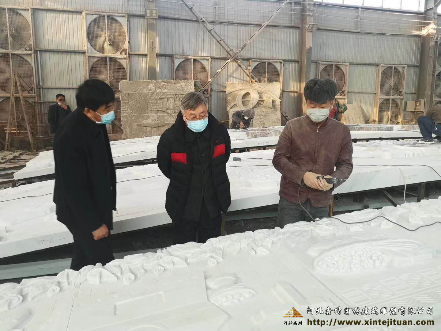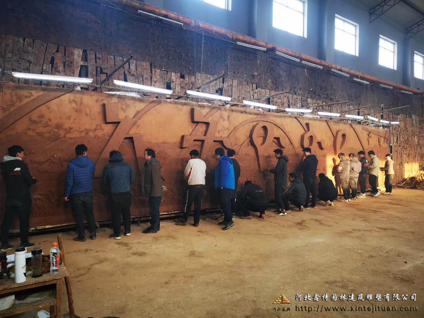 受疫情影响,我公司于2020年2月19日复工后, 在做好防护工作的同时,一直在挑灯夜战抢进度,争分夺秒赶工期。 我公司董事长吴学儒说:“我们高度重视文化浮雕墙的制作,雕塑方案经过多次论证完善,后期由经验丰富的技术人员进行组装,每个环节力求精益求精。”