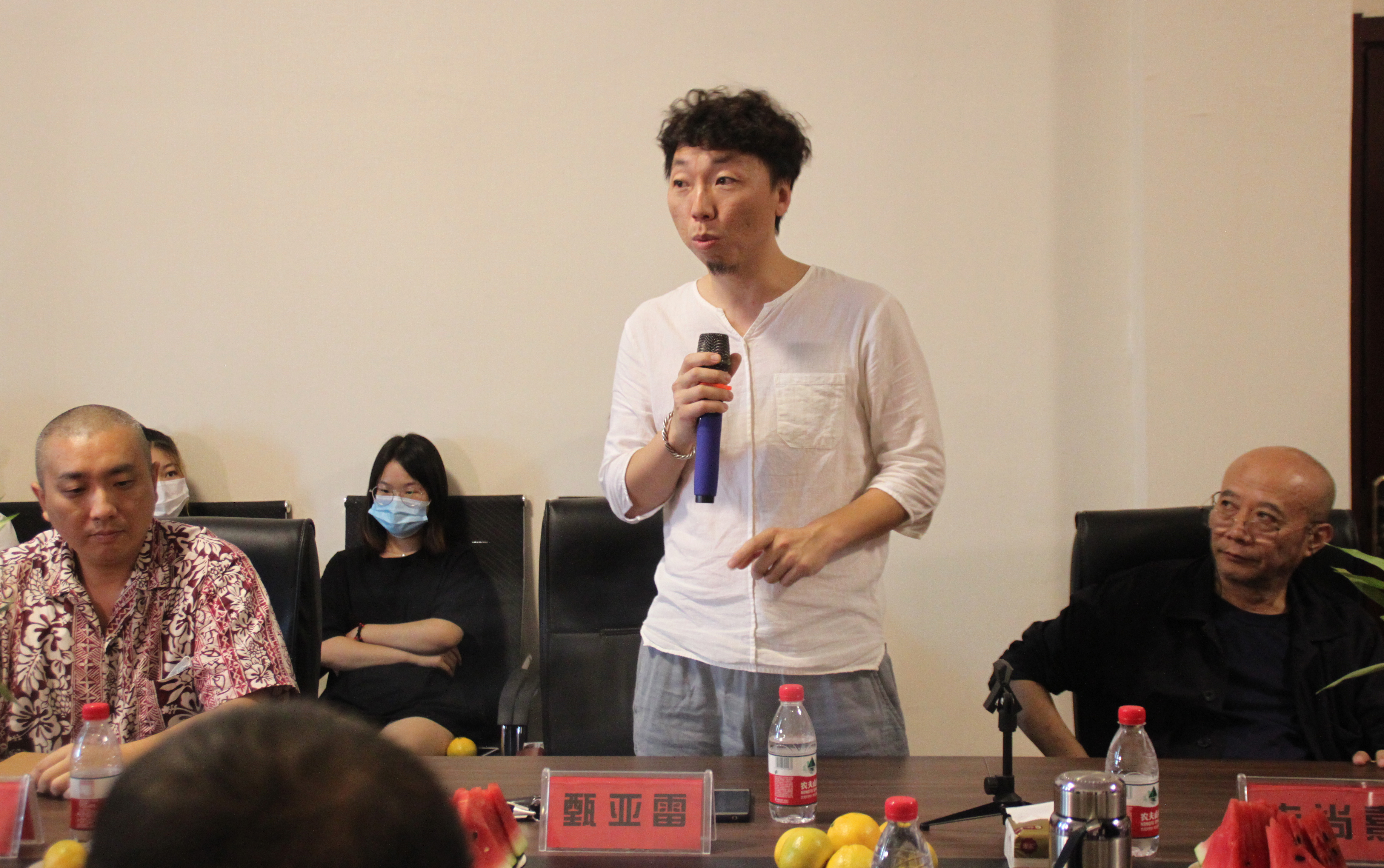 河北美术学院学生代表进行发言,首先对校方和实训基地表示感谢,作为一名在校生,能有这样的实习平台,自己很幸运;同时他与同学们倍感珍惜此次实训机会,并承诺遵守实训纪律、认真训练,通过实习有信心成为一名新时代,高素质、高技能的人才。实训导师赵勇、王贝从纪律、安全、防疫、生活、学习等多个方面对参训学生提出了具体要求与期望。郭宝寨、朱尚熹、黄兴国、甄亚雷等几位专家教授对建立实训基地的意义、学习计划、实习就业等方面,进行了深入研讨并提出了宝贵的意见。