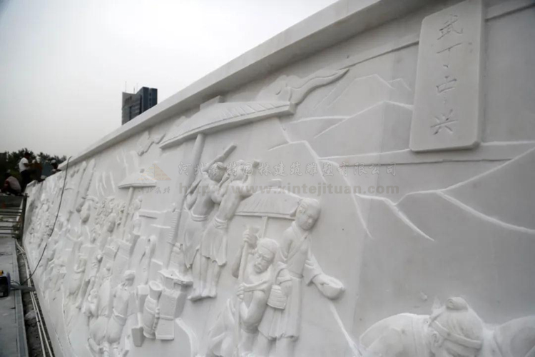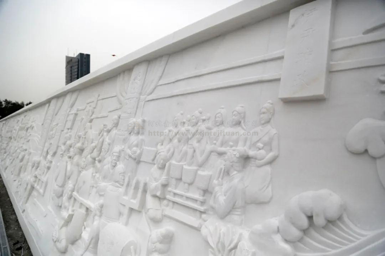 由汉白玉雕刻而成,是一座历史里程碑式的纪念性艺术浮雕,
