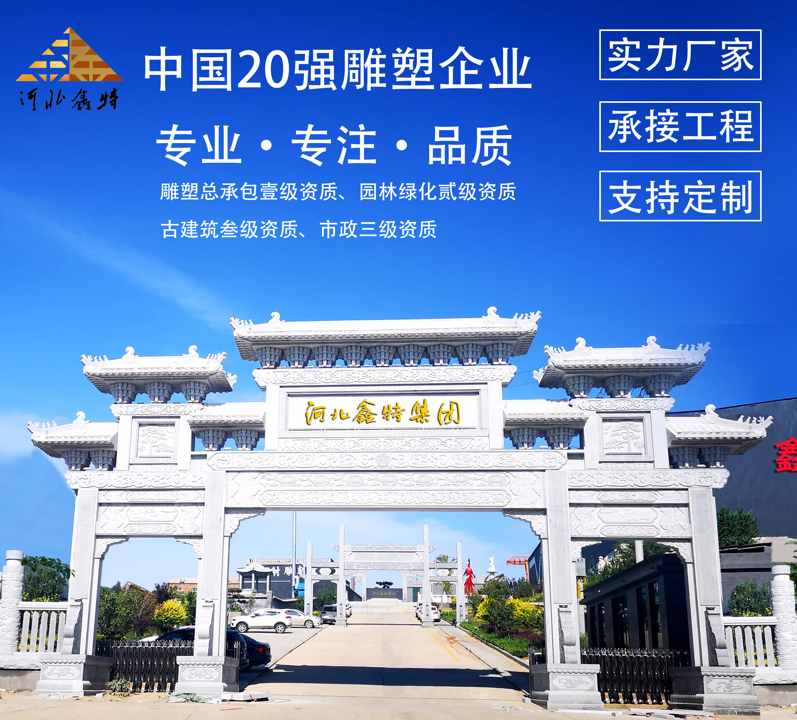 园林绿化贰级资质、古建筑和市政双叁级资质,公司连续七年获“中国雕塑20强企业”,