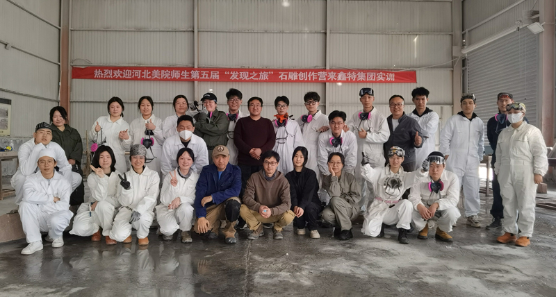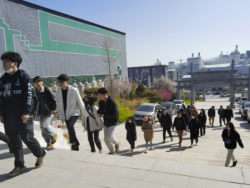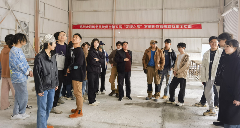 鑫特集团党支部书记、校企合作负责人宫旭鹏向河北美院的学生们,介绍了企业的发展历程、企业概况、主要产品及工艺,并陪同其一行人参观了泥塑车间、石雕车间、金属车间以及雕刻艺术馆。