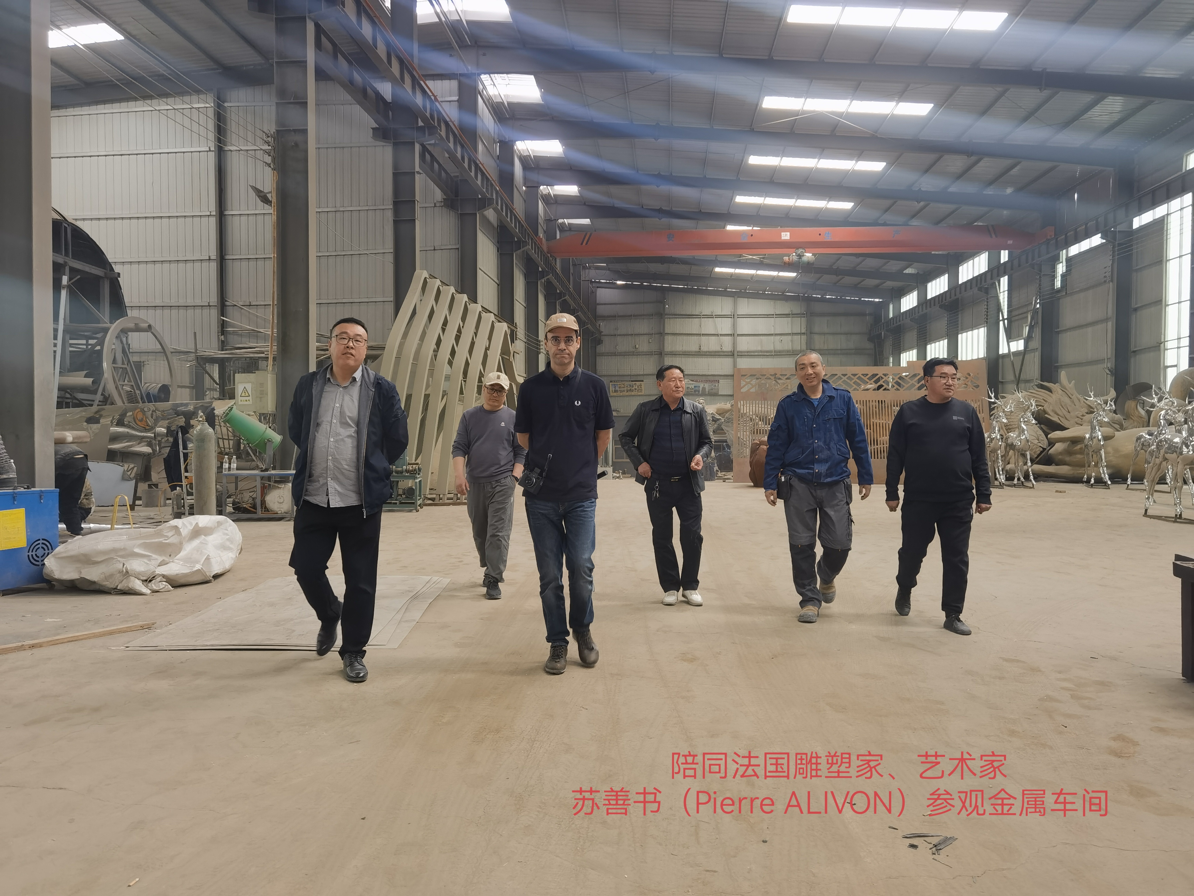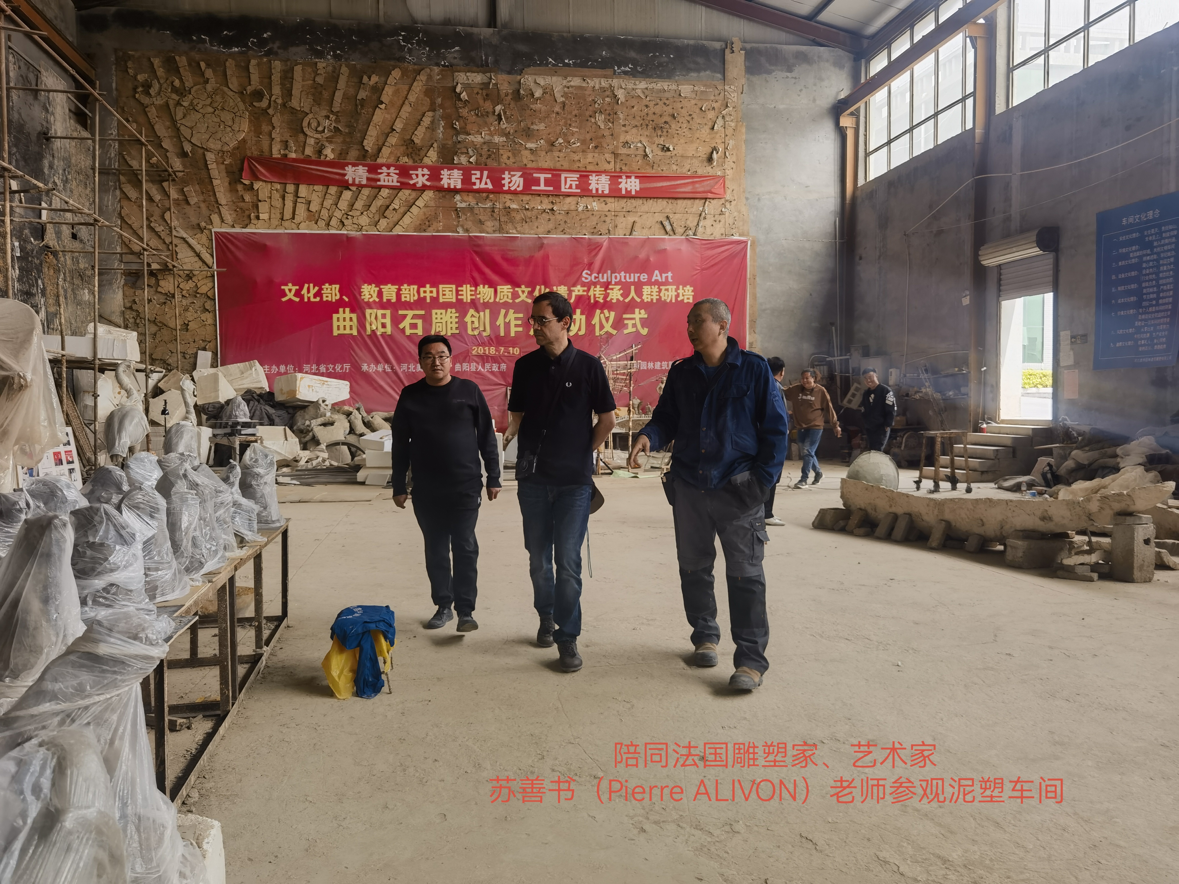 法国雕塑家、艺术家、摄影家苏善书(Pierre ALIVON)老师来鑫特雕塑集团参观厂区、观看河北美院石雕创作营