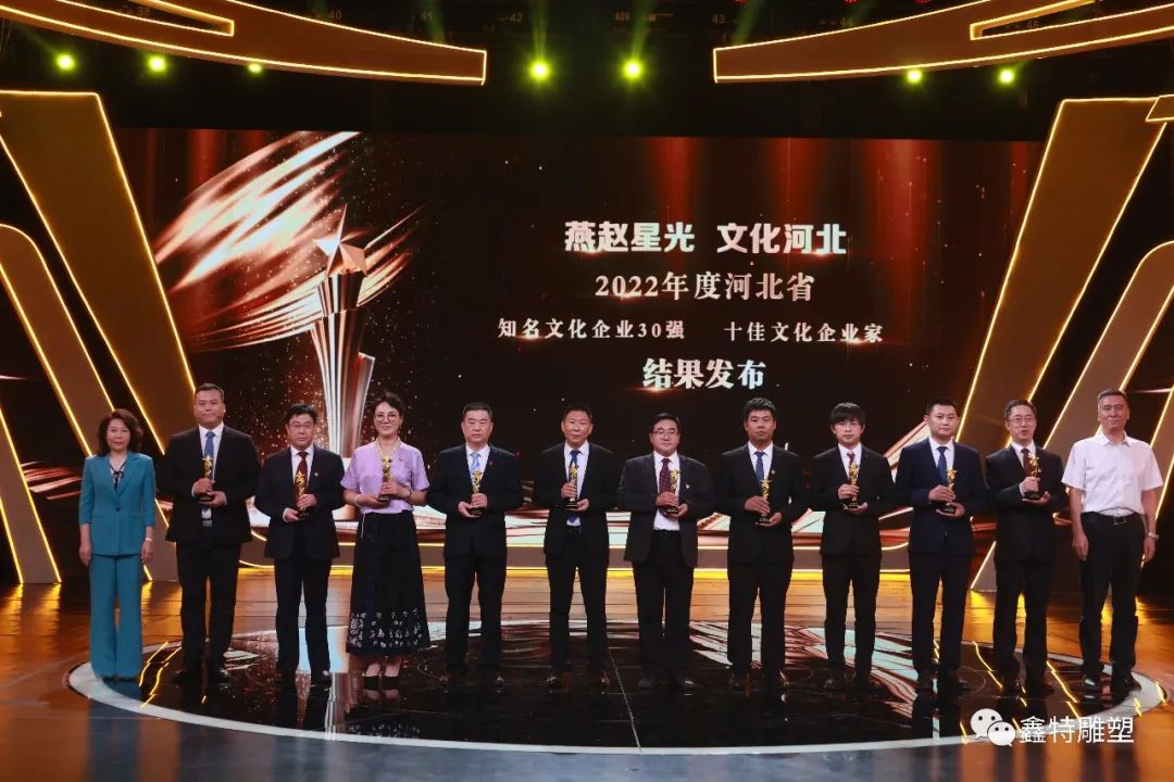 2022年度河北省“知名文化企业30强”“十佳文化企业家”,本次活动认定的30家知名文化企业涉及出版、发行、传输、文旅、工艺美术、文化科技、文化产品制作、文化数字内容服务、投资运营等多个类别,大多为各门类的佼佼者,在行业内处于领先地位,呈现出整体质量高、社会效益良好、经济效益突出的特点。