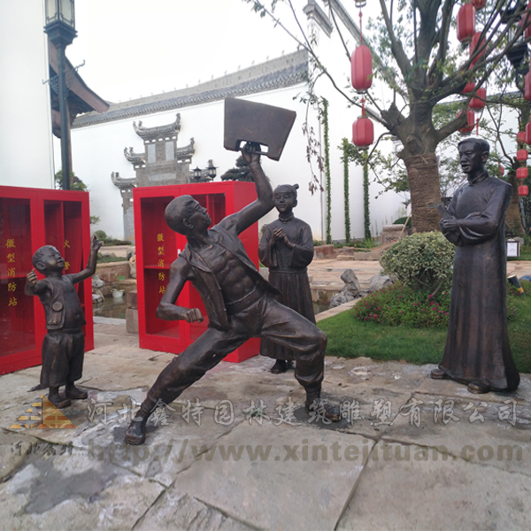 铸铜雕塑小品是一种艺术形式,通常以铜为主要材料,通过铸造工艺制作而成。它可以是抽象的,也可以是具象的,表现形式多样,可以是人物、动物、风景等。铸铜雕塑小品通常体积较小,易于摆放和展示,因此被广泛应用于园林、广场、酒店等公共场所。