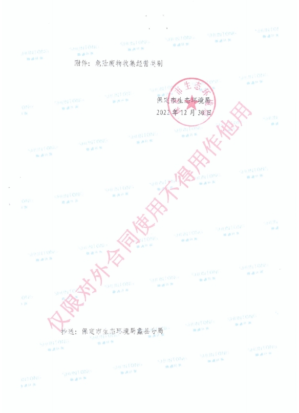 公司经营按环保部门允许范围进行经营,接收符合规定的危险废物,拒绝一切无联单或者未知危险废物,不超范围经营,严格实行联单管理制度(《危险废物转移联单管理办法》)。