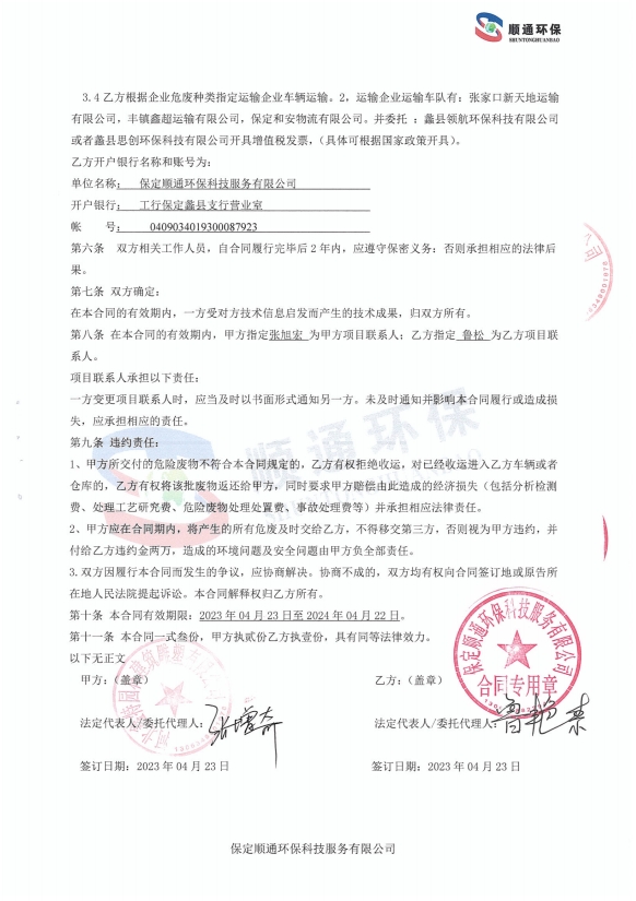 - 具体负责公司危险废物的收集、分类整理、贮存、转运、转移、综合利用,落实危险废物污染管理各项工作的实施情况。