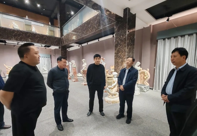 董事长吴学儒陪同厅长一行人,先后参观了企业的生产车间和雕刻艺术馆。期间宋厅长多次止步,与董事长及政府相关负责人在工艺、科技、环保、企业当前发展现状与面临的问题等进行深入沟通和探讨。