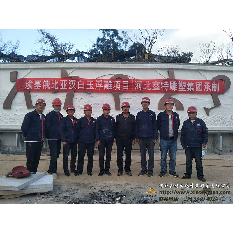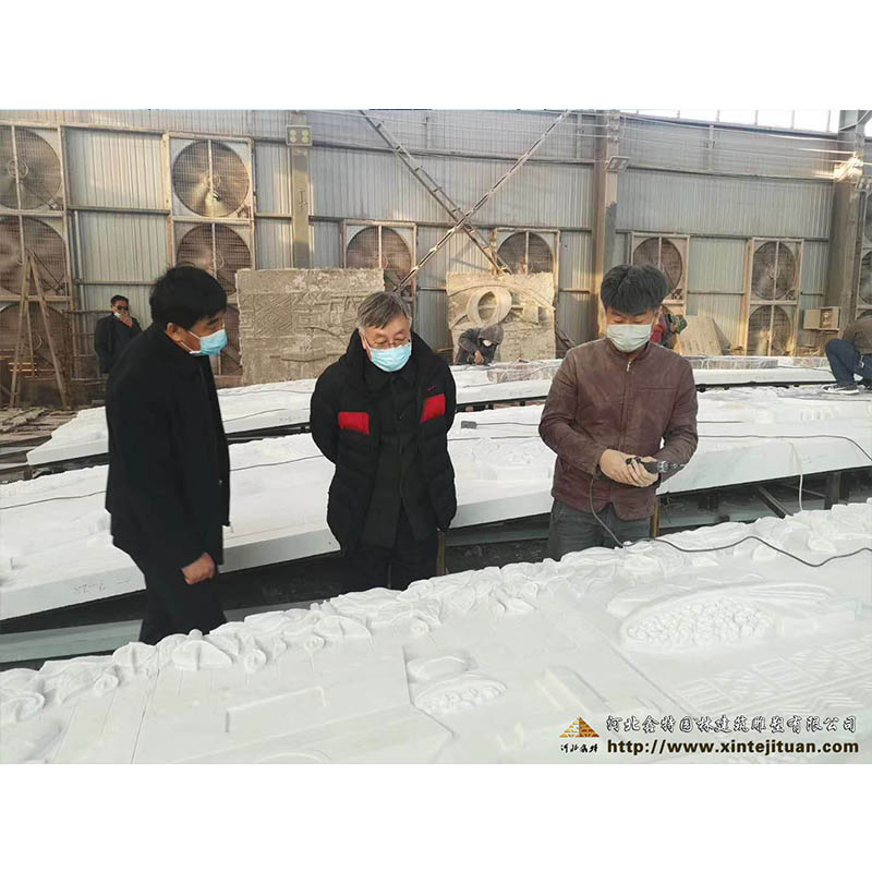 董事长吴学儒介绍,2019年12月12日,该公司与上述项目承建单位中交一公局集团有限公司签订“120平方米汉白玉文化浮雕墙”的设计、制作与安装合同。为此,我公司第一时间成立专项小组,详细制定时间进度表和技术操作规程,组织河北省工艺美术大师、雕塑学校优秀师生代表等百余人参与设计雕刻。因浮雕墙体呈弧形,该公司打破常规做法,用槽钢和方钢焊接出1:1龙骨弧度,力争实现设计与施工最小误差。