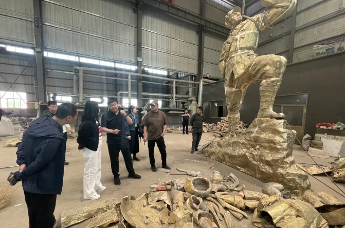 为促进鄂尔多斯文艺事业繁荣发展,加强与先进地区文化产业公司的交流合作,4月21日,鄂尔多斯文学艺术界联合会党组书记、主席冯世业,鄂尔多斯美术馆名誉馆长布仁巴雅尔等一行人来河北鑫特雕塑集团考察学习。