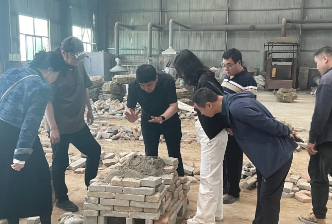 在考察过程中,鄂尔多斯文学艺术界联合会的成员们来到车间与正在河北鑫特雕塑集团实训的河北美术学院的学生们进行了沟通。