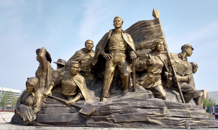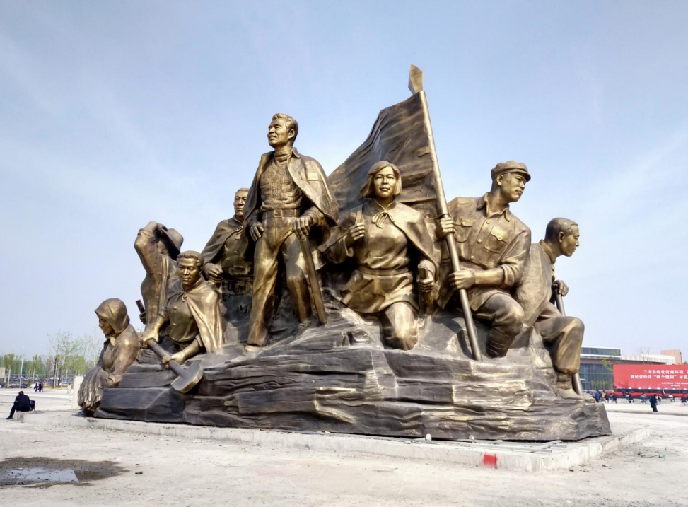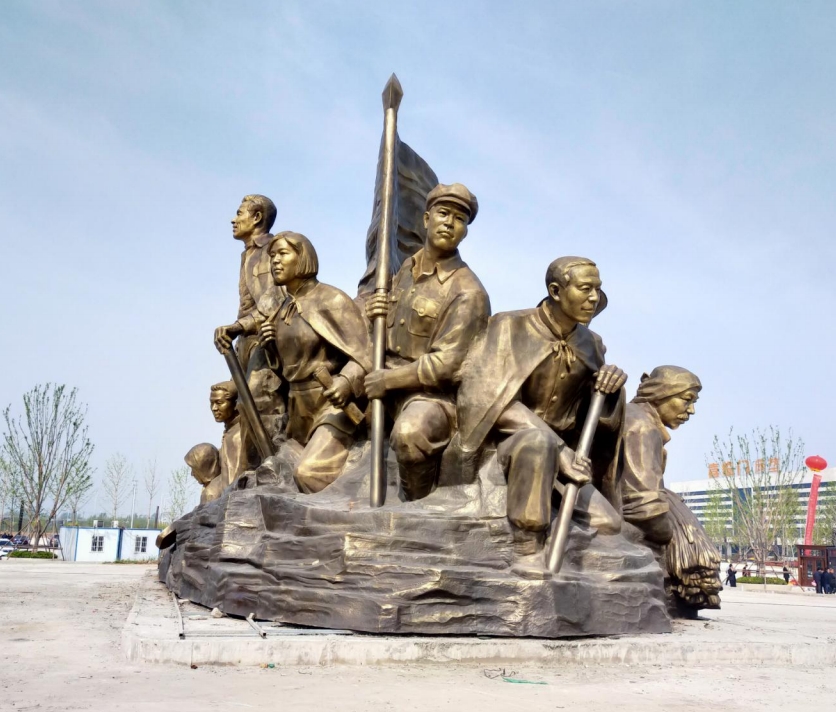 人物部分以铸铜材质打造,细腻地刻画了焦裕禄坚毅的面容和挺拔的身姿,让人感受到他的伟大人格魅力。红旗部分同样采用锻铜材质,飘扬的姿态给人以振奋和鼓舞,象征着焦裕禄精神如同一面旗帜,引领着兰考人民不断前进。 两种不同金属材质的巧妙结合,无疑是对制作团队技艺的巨大考验。